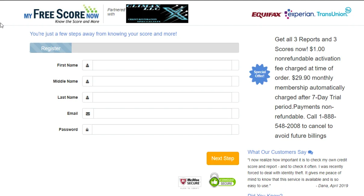 To prepare for the call, Sign up for MyFreeScoreNow click the following link to get you started! ----> GET YOUR CREDIT REPORTS FOR JUST $1<----
